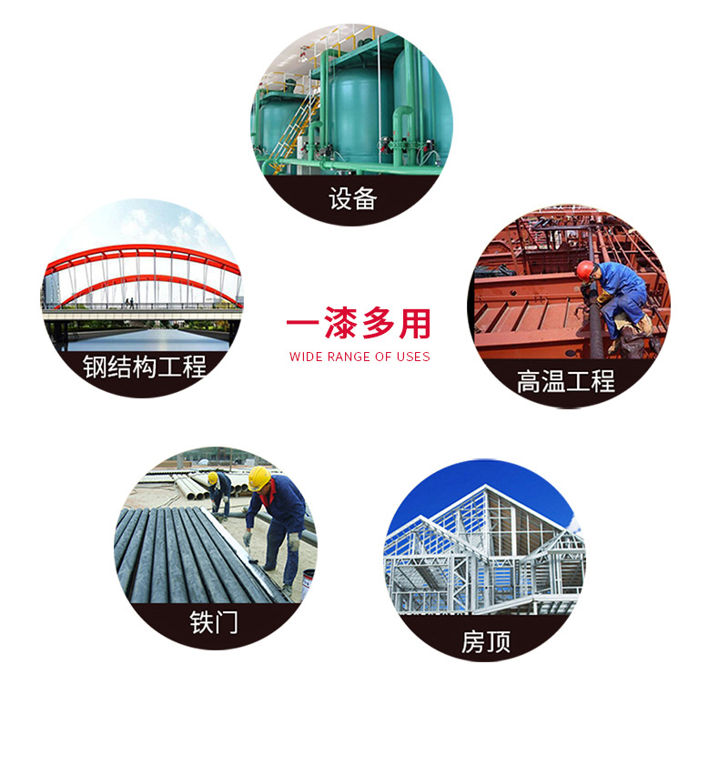 應(yīng)用:適用于中等裝飾要求的鋼結(jié)構(gòu)、機(jī)械設(shè)備、家用電器、五金配件、汽車配件等領(lǐng)域的裝飾與防護(hù),作為底漆或者底面合一漆使用。